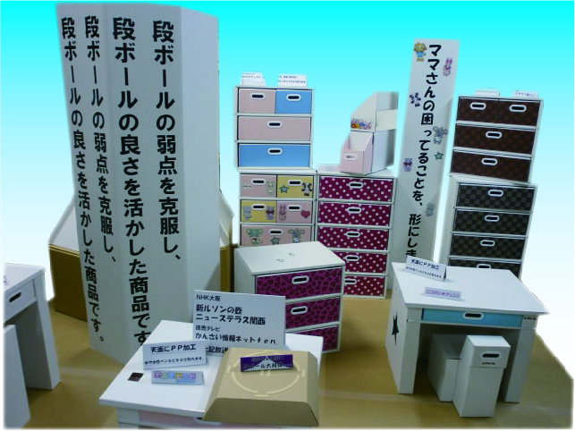 この度弊社は「段ボールの弱点を克服しエコな段ボールの良さを活かした商品」を テーマに9月3日(水)~9月5日(金)まで「第78回東京ギフトショー秋2014」に 出展させて頂きます。 ぜひともご来場下さいますようお願い申し上げます。 会場:東京ビックサイト 東1ホール(ブース№1215) ベビー&キッズフェアー(A1) 日時:9月3日・4日:10:00 ~ 18:00 5日 :10:00 ~ 17:00 お子様のリビング学習に最適な幼児用デスクセット。 若いお母さんたちのアイデアを活かしたお片付けデスクセットやスッキリ・トイレ収納BOX、 貯金箱キットなどを展示致します。 又、海外へのお土産にも喜ばれる段ボール相撲キットや近畿大学と連携で開発中のドームテントなども展示させて頂きます。ご来場お待ちしています。