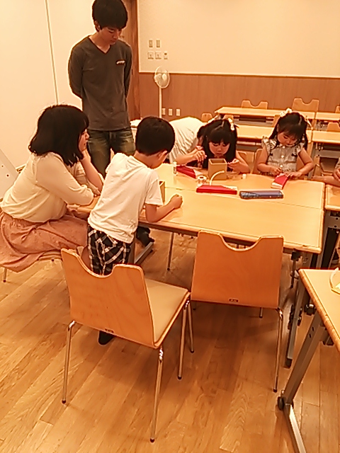 「段ボールでふで箱をつくろう」のテーマで幼児・小学生低学年を対象に行いました。 産学連携で開発をともにした近畿大学の学生さん2人にも協力頂き、楽しい時を過ごしました。 楽しそうにシールを貼ったり、絵を描いたりしている笑顔がとても印象的でした。